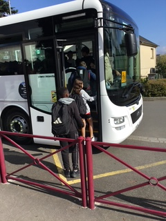 En ce début d’année, le jeudi 9 octobre, nous avons reçu des médiateurs de BREIZH GO, le réseau de transport public de Bretagne qui dépend maintenant de la Région. Ceux-ci sont intervenus auprès des élèves de 6e afin de les sensibiliser à la sécurité dans les transports scolaires. Nos 3 classes de 6e en parallèle de 14h à 15h30 ont assisté à cet évènement. Chaque intervention a commencé en classe par un échange d’une heure avec les élèves à l’aide d’une vidéo réalisée à l’initiative du service des transports et se poursuit avec les élèves d’une autre classe, à l’extérieur durant 30 minutes, proche des conditions réelles par des exercices pratiques d’évacuation d’un car (en cas d’incendie) qui était stationné sur le parking devant le collège. Nous avons interrogé des élèves pour avoir leur ressenti : « c’était bien, ça nous a appris des choses : les différentes zones dans un car, comment monter dans le car avec son cartable. » « c’était important pour savoir comment se comporter dans un car, c’est préférable de faire cette intervention maintenant pour connaître les bons gestes dès le début de l’année ».