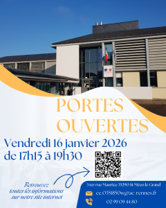Nous vous invitons à notre soirée « portes ouvertes » le vendredi 16 janvier de 17h15 à 19h30 pour que vous puissiez découvrir le cadre où évoluent nos élèves.